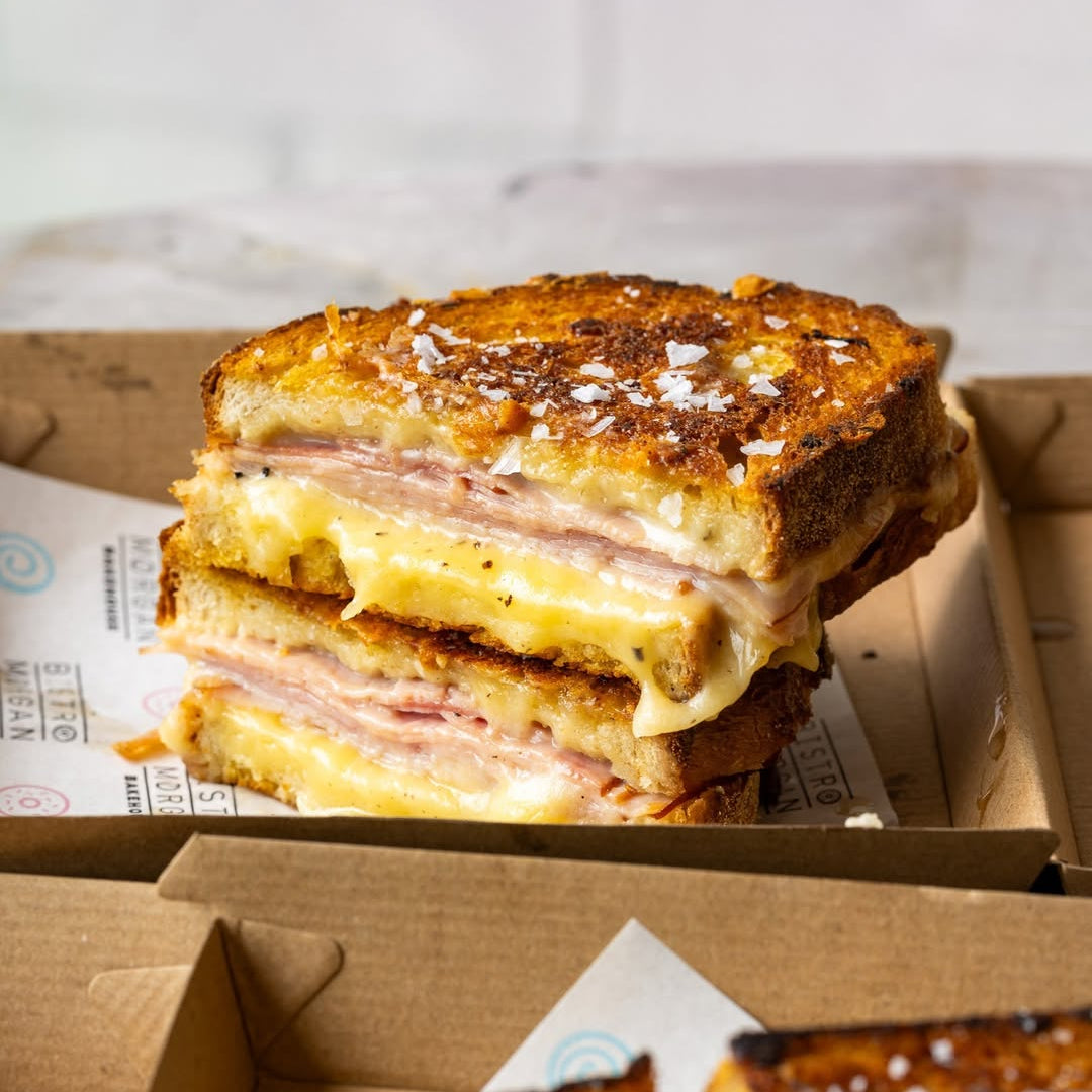 Roasted marinated pork, leg ham, grain mustard, swiss cheese & chermoula on toasted sourdough